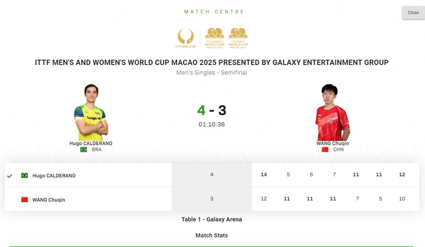 北京時間4月19日,乒乓球世界盃男單半決賽,巴西選手雨果4-3逆轉中國選手王楚欽,七局比分:【14-12,5-11,6-11,7-11,11-7,11-5,12-10】 。沒錯,王楚欽是在大比分3-1領先的情況下被雨果給逆轉的,王楚欽作爲世界第二這場比賽算是一敗塗地。