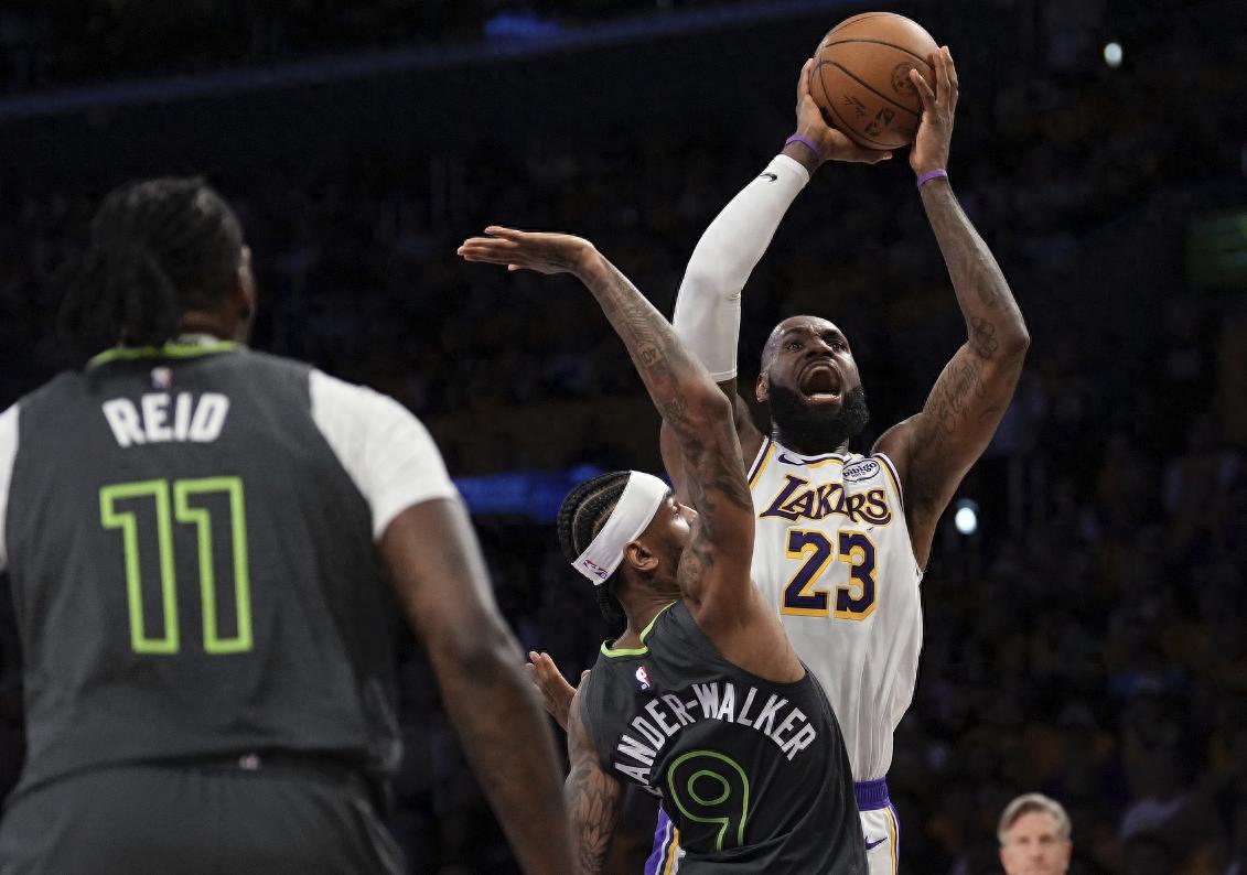 次節森林狼是一波14-4直接反超,老詹背身2+1穩定局勢,詹姆斯追身大帽沃克還是釘板大帽,40歲的老頭太猛了。隨後勒布朗兩次上籃都偏出略顯尷尬,詹姆斯又出現了一個傳球失誤,老詹前場籃板後空切2+1,只可迪溫三分壓哨,半場詹姆斯10中4拿10分1籃板0助攻2搶斷1蓋帽2失誤。