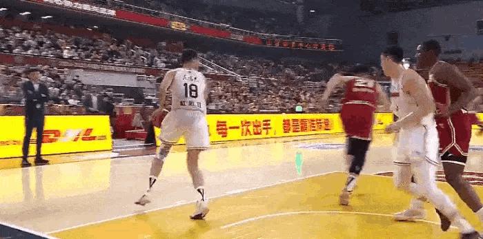 比賽來到第四節還剩7分43秒,廣東宏遠後場發球,機敏的迪亞洛看準時機,試圖從胡明軒身後進行攔截搶斷,眼看着皮球即將失控,胡明軒和隊友杜潤旺合圍夾擊護住皮球,主裁判閆軍也及時響哨,吹罰了迪亞洛身後搶球犯規。