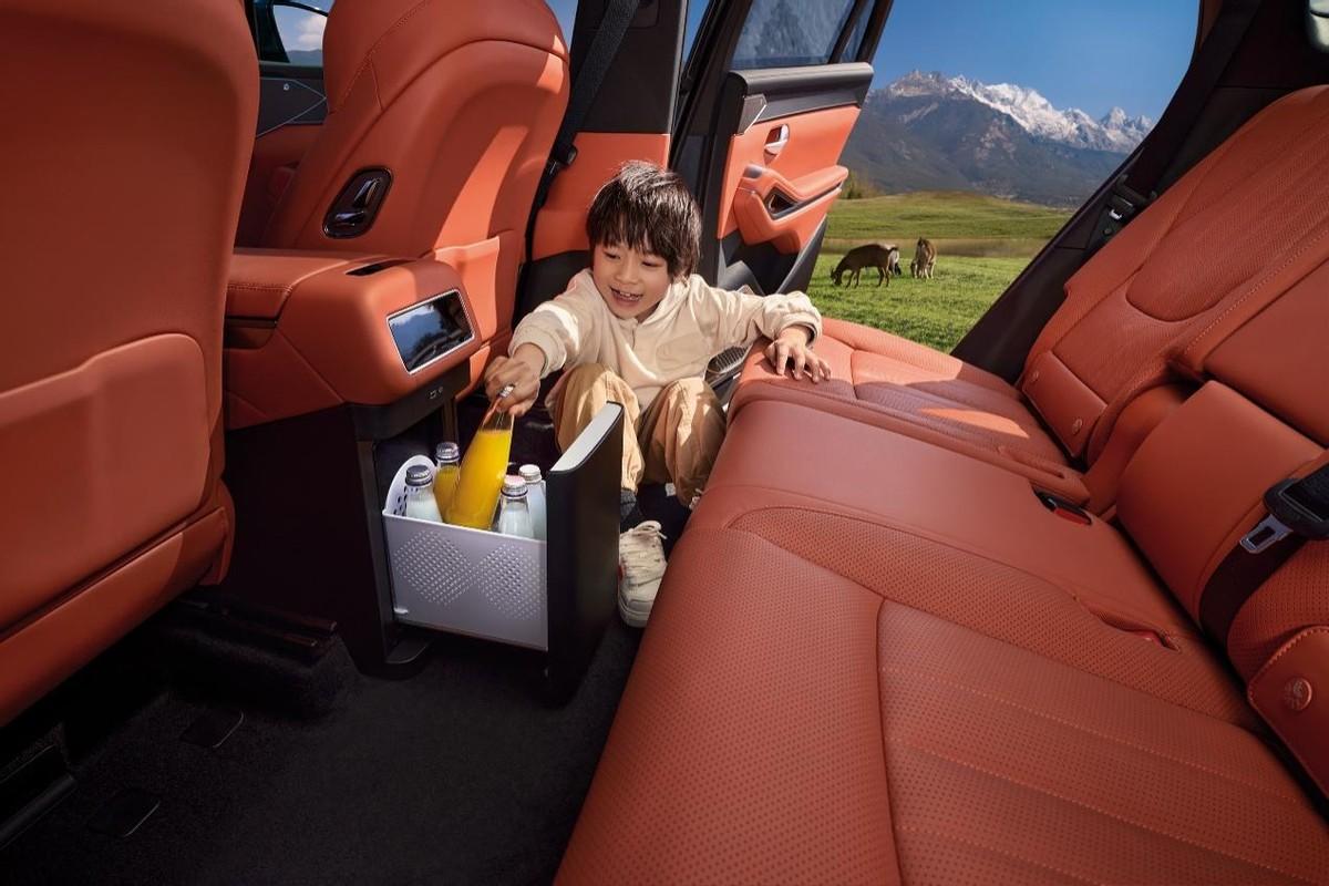 舒享配置上,寬適雲感座椅採用11層填充結構,並擁有真皮包覆、前中排座椅通風加熱、SPA級10點式按摩、14向電動調節、電動腿託,打造極致乘坐享受。交互式雙層環抱氛圍燈、比亞迪自研21揚聲器音響、雙層車載冷暖冰箱、智能香氛等豪華配置,五感融合,讓每一位家人都能收穫最高品質的豪華享受。