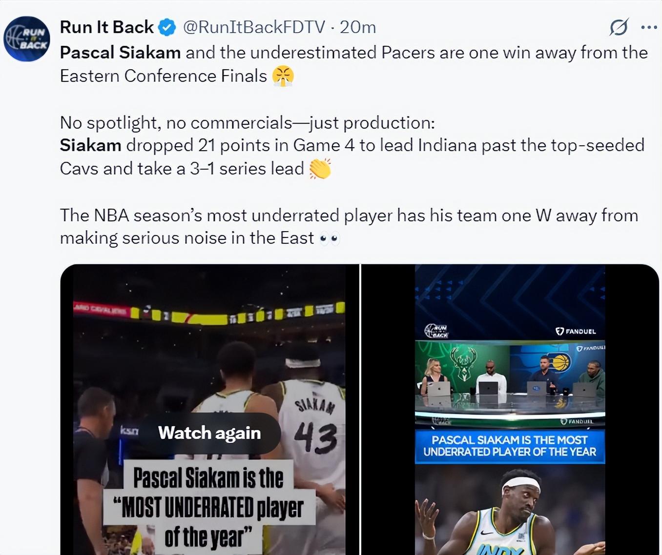 美媒:你們一直在討論哈利伯頓連續兩次進入東決,但西卡連續兩賽季都是全明星,他也是步行者唯一全明星,你們應該尊重他。