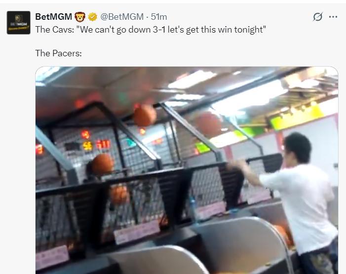 美媒BetMGEM:當騎士隊賽前說我們不可能1-3落後,步行者連續命中不給騎士一點機會。