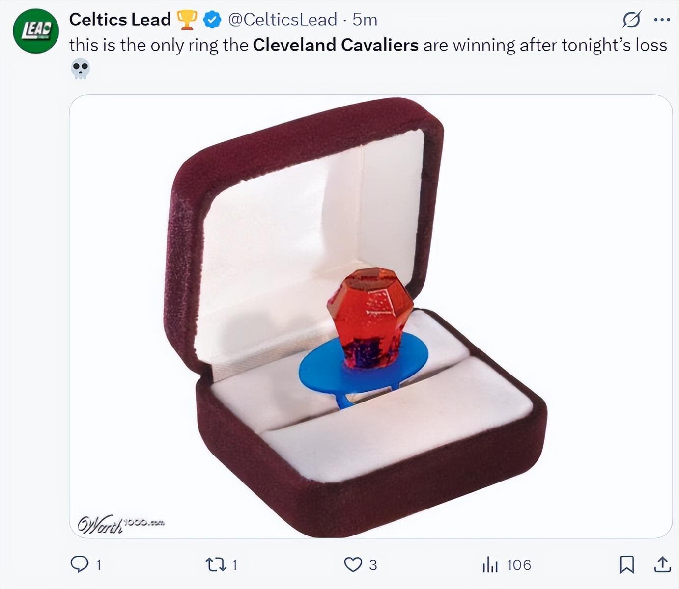 綠凱媒體:這就是騎士隊在輸掉G4後獲得的總冠軍戒指——塑料的。