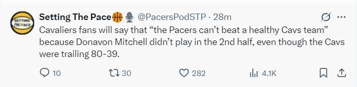 印城媒體:騎士球迷以前說步行者不可能擊敗擁有狀態出色米切爾帶領的騎士隊,可他們半場就落後41分啊!