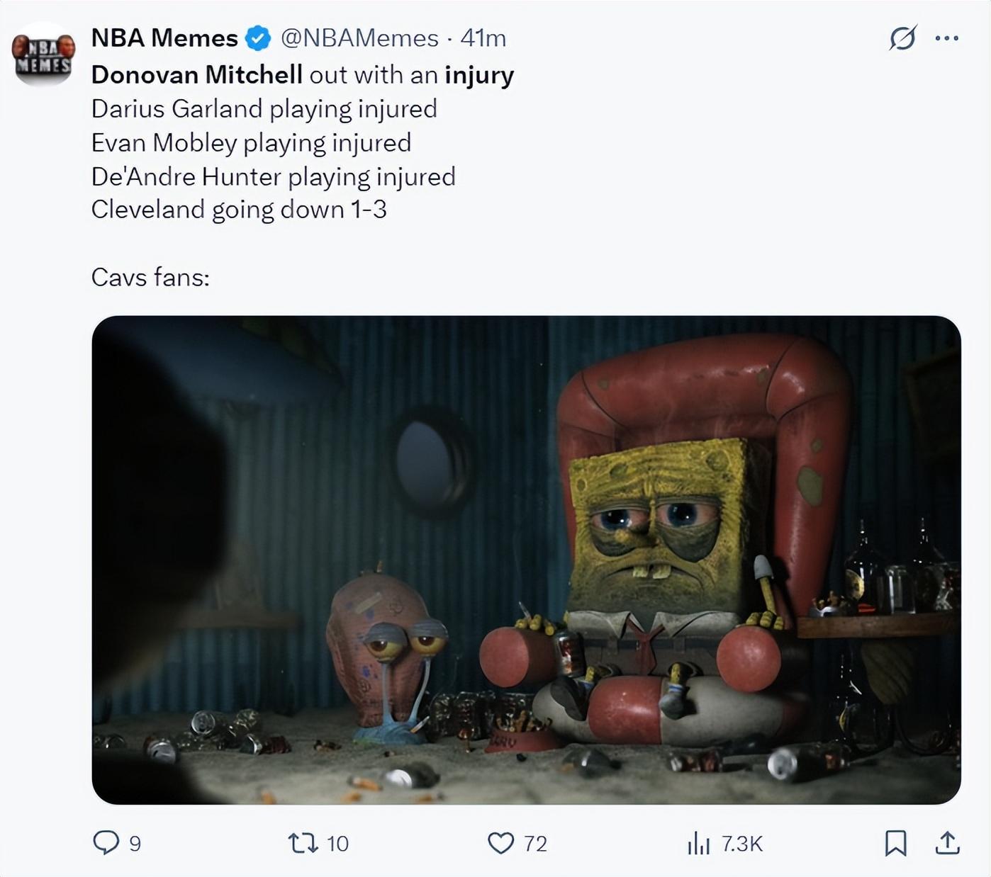 美媒NBA Memes曬出騎士隊的傷病狀態: