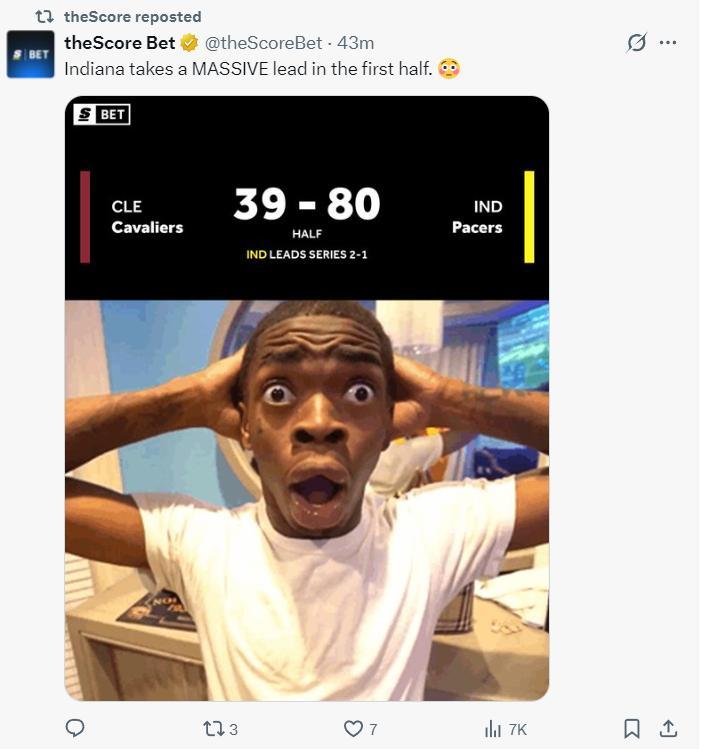 騎士隊首節23分,第二節16分,上半場騎士3個助攻+14次失誤只拿到39分,步行者則狂轟80分,步行者上半場已經是吊打騎士隊,而米切爾在中場暫停熱身時還遭遇了左腳踝扭傷。