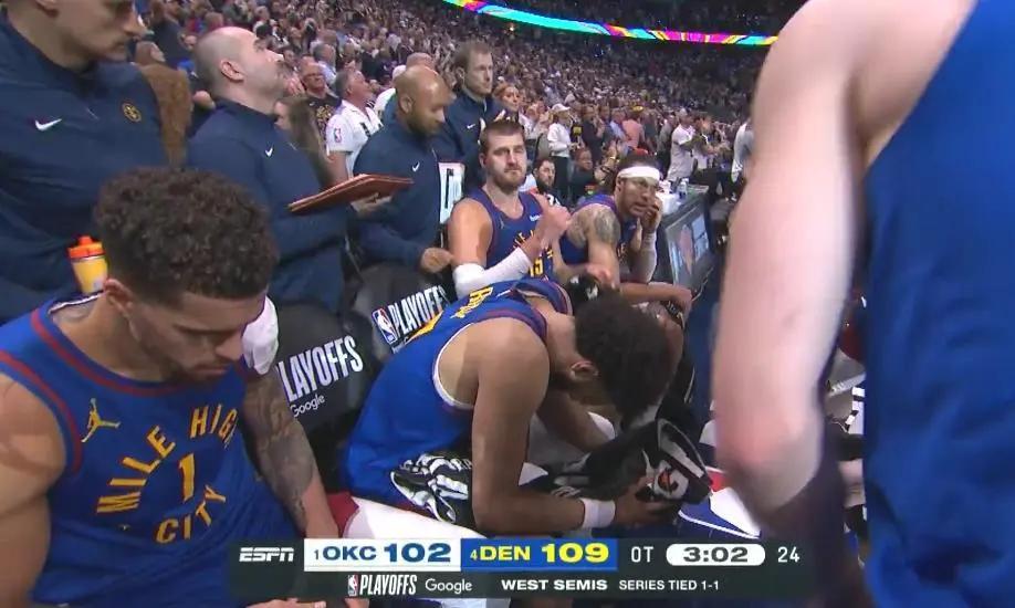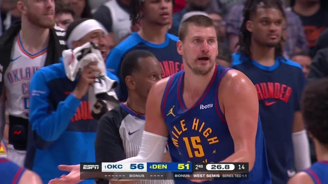 西部半決賽第三場,回到主場的掘金,加時113-104力克雷霆,總比分2-1取得領先。
