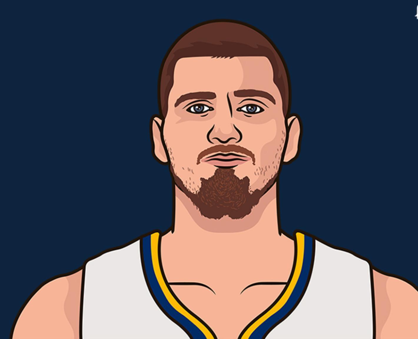 全場比賽約基奇40分鐘,14中9,三分3中1,罰球11中9,拿到29分14籃板8助攻2搶斷1蓋帽僅1失誤,約基奇的表現太出色了。約G7的美譽也不是蓋的,生涯第七次搶七了。
