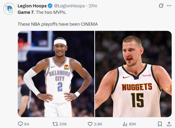 美媒:雷霆與掘金搶七了,NBA季後賽就像電影一樣。