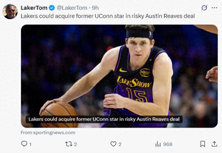 北京時間5月16日,湖人媒體Laker Tom轉發了一篇來自Sportingnews的推文,標題《湖人可能在裏夫斯的交易中得到前康大球星》。