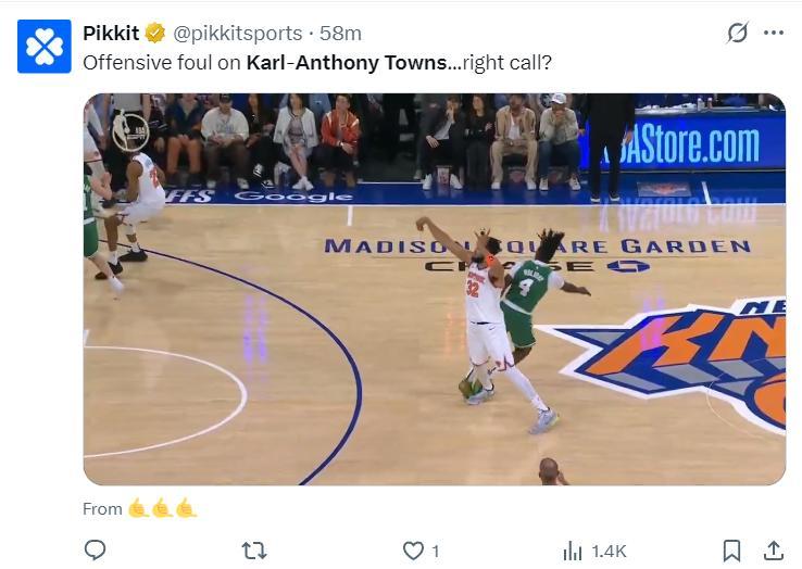 唐斯這場比賽從開場就很“硬”,雖然他的3+1被裁判吹罰了進攻犯規,但唐斯沒有去跟裁判喋喋不休,而是狠狠胖揍綠凱的內線,首節唐斯各種頂着布朗、霍福德上籃,單節9中4拿11分4籃板。