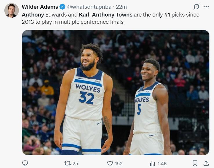 根據森林狼記者的報道,自2013年後唐斯與愛德華茲是唯二多次進入分區決賽的狀元球員。