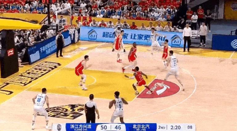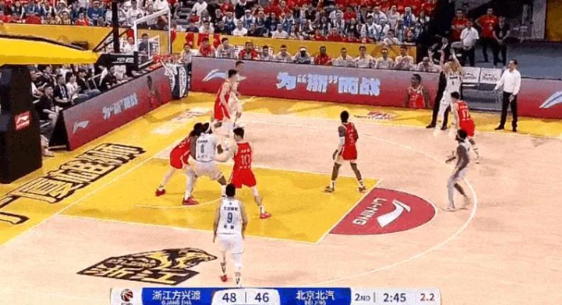 奧莫特好不容易拼下了前場籃板,方碩又一個大角度給弱側底角出界,直接傳到觀衆席。