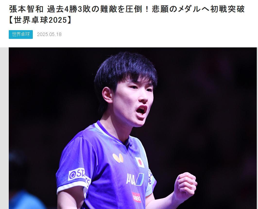 日本媒體《東京桌球新聞》立馬發文——張本智和克服心魔,以壓倒性的態勢擊敗了此前4戰3負的對手。