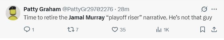 美球迷:是時候讓賈馬爾·穆雷“季後賽先生”的說法退休了,他根本不是。