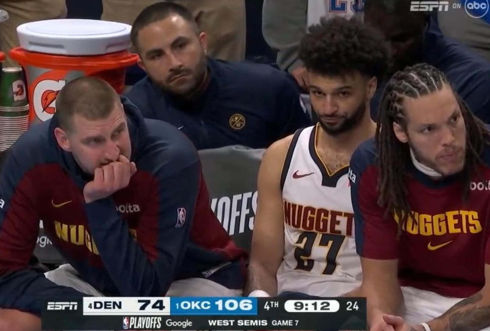 北京時間5月19日,丹佛掘金以93-125不敵俄克拉荷馬雷霆,大比分3-4止步次輪。賈馬爾-穆雷在這場最關鍵的比賽中相當拉胯,上半場7中2,全場比賽16中6+三分8中1,第三節是瘋狂嘗試三分手感侵害全隊,最終末節打2分鐘被換下觀戰。
