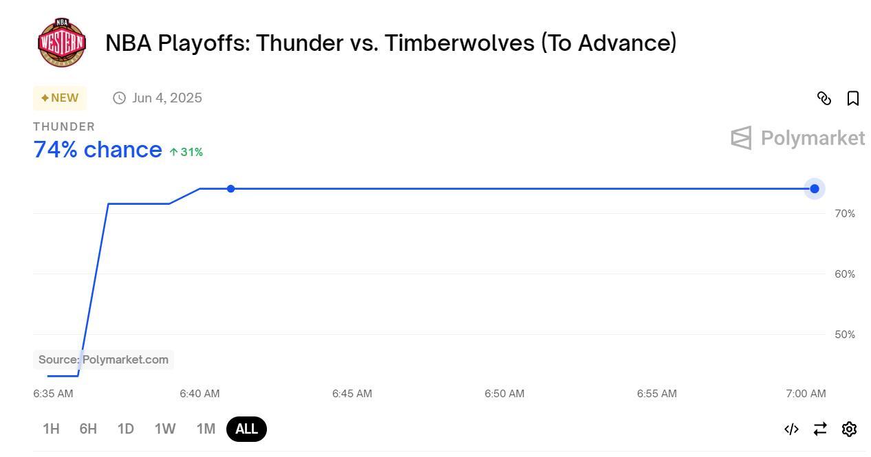 從數據媒體的晉級概率來看,雷霆74%的概率擊敗森林狼,換言之森林狼爆冷的概率只有26%而已。