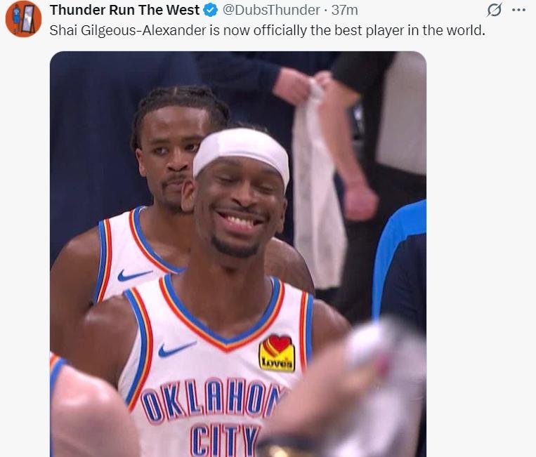 雷霆媒體還寫道:現在SGA就是全世界最強的籃球員。