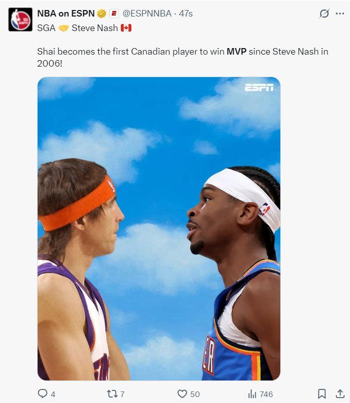 北京時間5月22日,NBA官方宣佈24-25賽季的常規賽MVP獲得者是雷霆隊球星亞歷山大,換言之SGA擊敗了揚尼斯、約基奇職業生涯首次當選MVP。