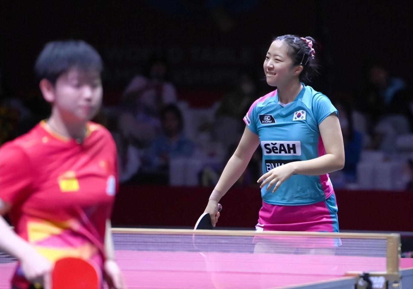 申裕斌在輸掉比賽後十分可愛,她抿嘴尬笑了一下,實際上她也知道自己與孫穎莎之間的差距,但能從孫穎莎身上贏下兩局已經相當不易,兩人此役後國際比賽交手7次,申裕斌7連敗。