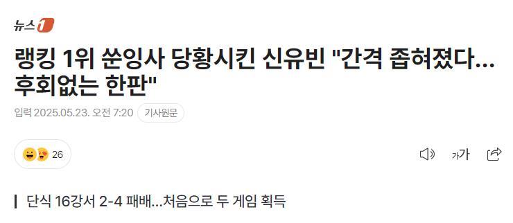 韓媒賽後發文:申裕斌讓世界第一的孫穎莎有些驚慌失措,兩人的差距正在縮小,沒有後悔的比賽。