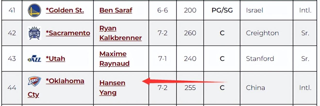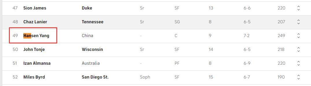 只能說經過裏奇-保羅不懈的努力後楊瀚森落選的概率正在走低,五大美媒的預測順位楊瀚森都在被選中的範疇內。截止北京時間5月23日,CBS預測楊瀚森是在次輪49順位被騎士選中,CBS也是預測楊瀚森排位最低的媒體。