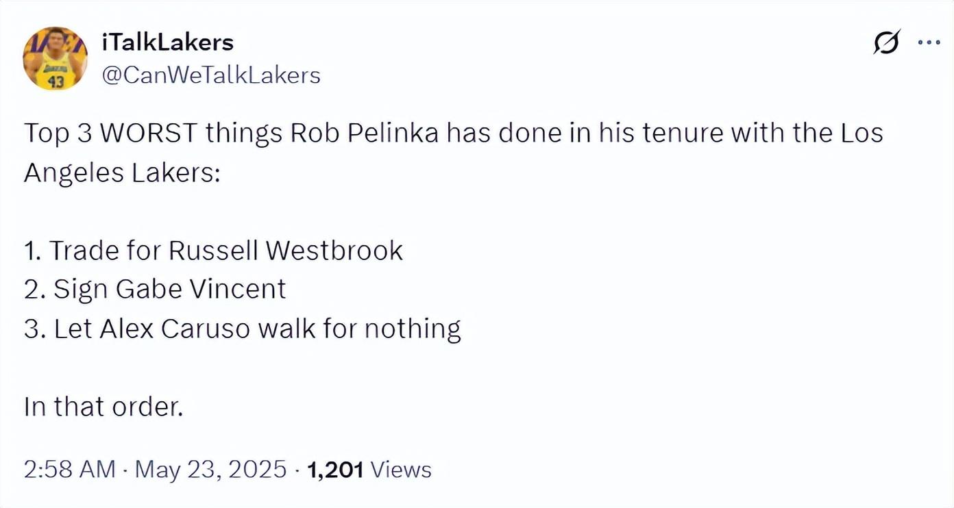 湖人媒體曬出佩林卡上臺後的運作敗筆: