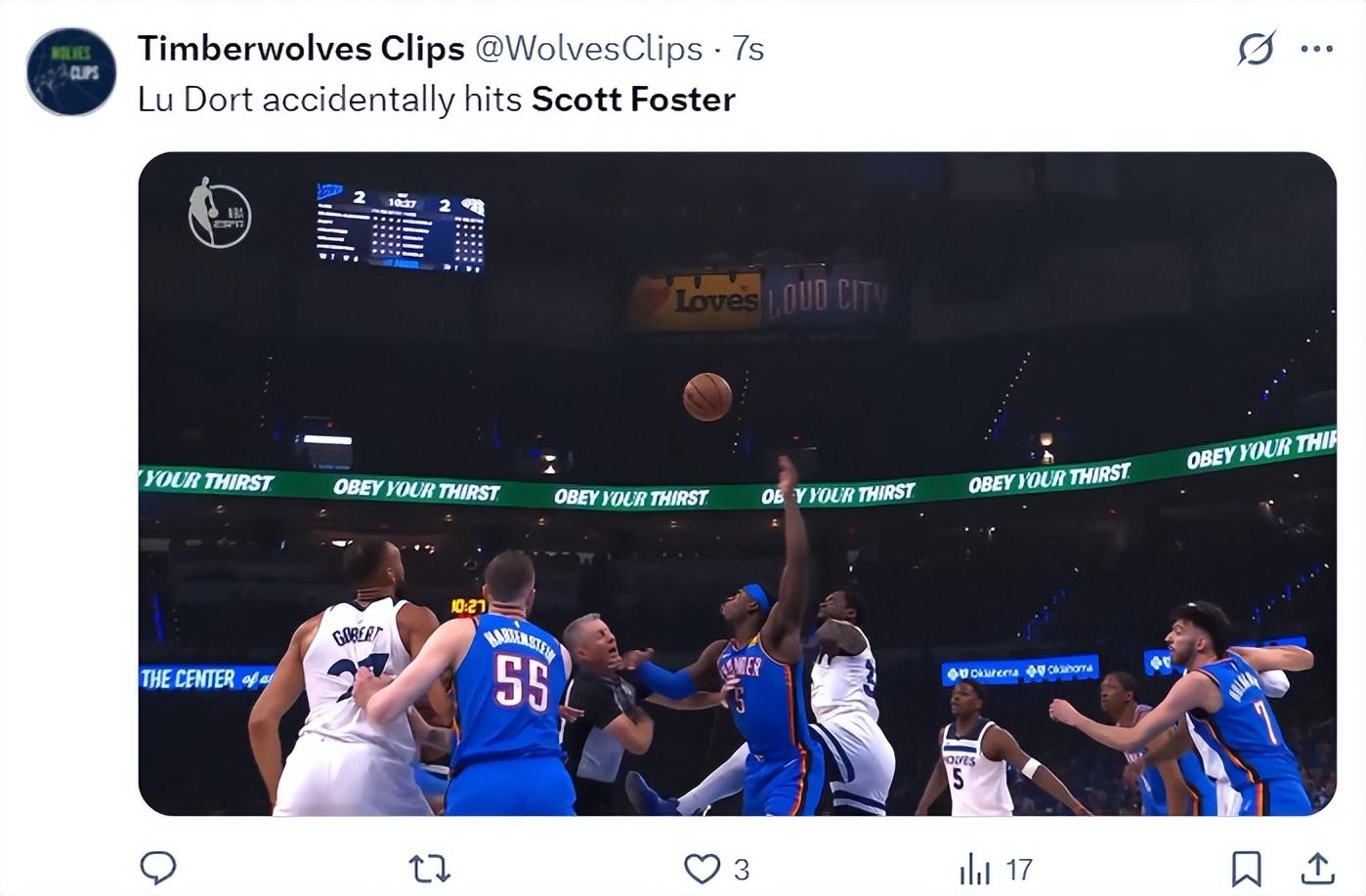 福斯特常規賽吹罰雷霆兩場,雷霆2場合計淨勝27分;四場比賽雷霆合計贏102分。
