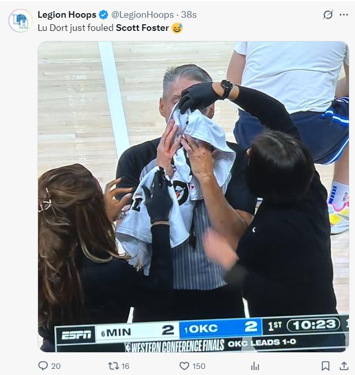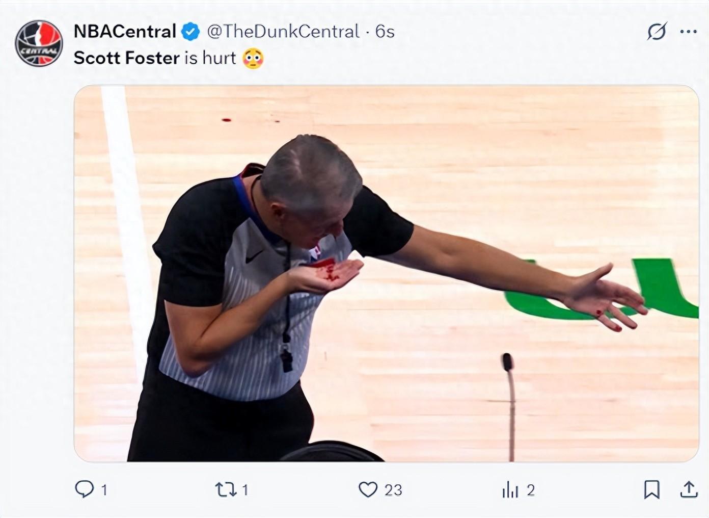 比賽進入暫停後福斯特去場邊止血,實際上這場西決是有備用裁判的(也就是第四裁判),福斯特一直流血也沒有啓用第四裁判的意思。