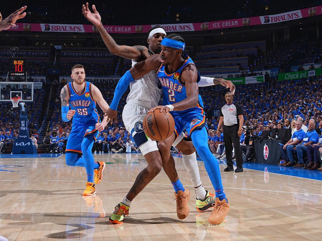 末節亞歷山大常規輪休休息了3分多鐘纔回來,SGA突破麥丹直接被麥丹泄憤的推搡出去裁判回看,麥丹喫了一級惡意,隨後SGA突破歐洲步命中,撤步中投,他一直幫助雷霆穩穩壓制森林狼,最終鎖定勝局。