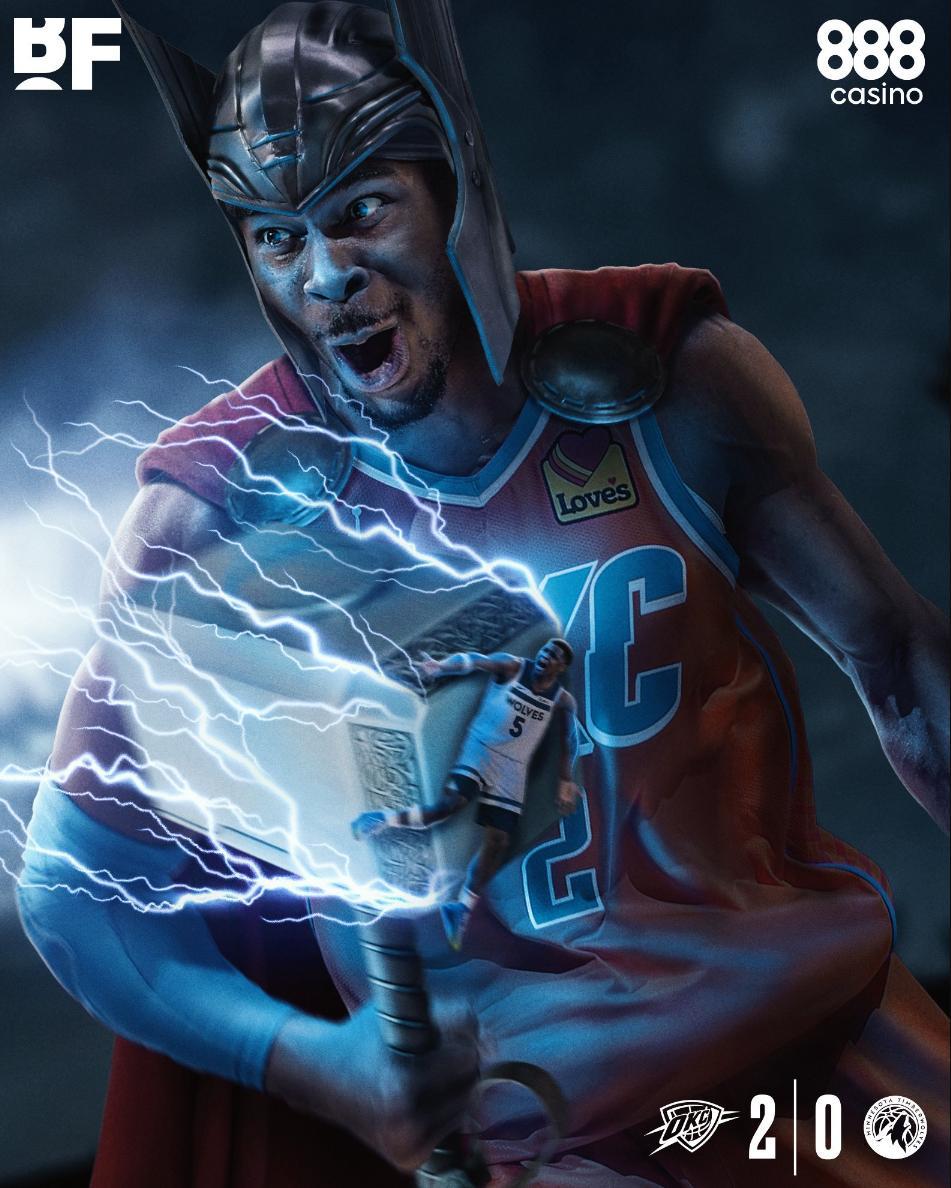 第三節SGA上罰球線後全場已經高呼MVP,SGA撤步的中投還有,突破後被裏德從空中撂倒兩罰全中拿到30+,單節11分2助攻1搶斷,三節15中10拿30分6助攻3籃板3搶斷,季後賽第九次30+了隊史單次季後賽第二多,連續五場季後賽30+隊史第一杜蘭特都沒做到太猛。