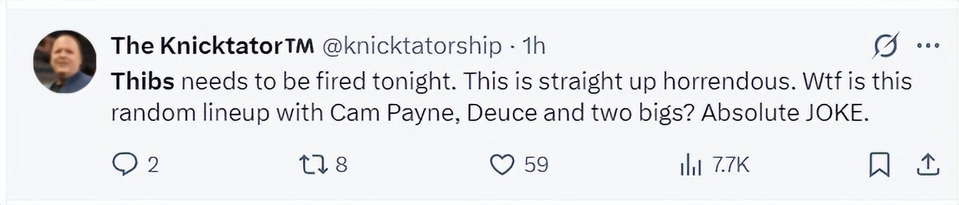 尼克斯球迷:我們是時候做出改變了,下面任何一個人作爲尼克斯教練都會比錫伯杜更好,尼克斯有更多選擇。很明顯錫伯杜不懂得如何運用輪換陣容,他的執教風格太多缺陷,過度使用主力,未能充分挖掘陣容的天賦,也無法做出準確調整。