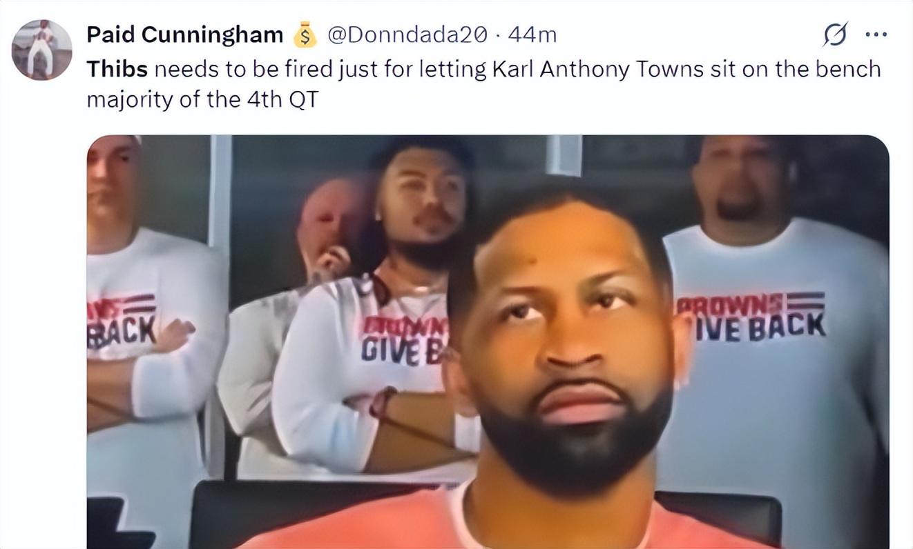 美球迷:錫伯杜直到比賽還剩2分鐘落後10分才讓唐斯登場。