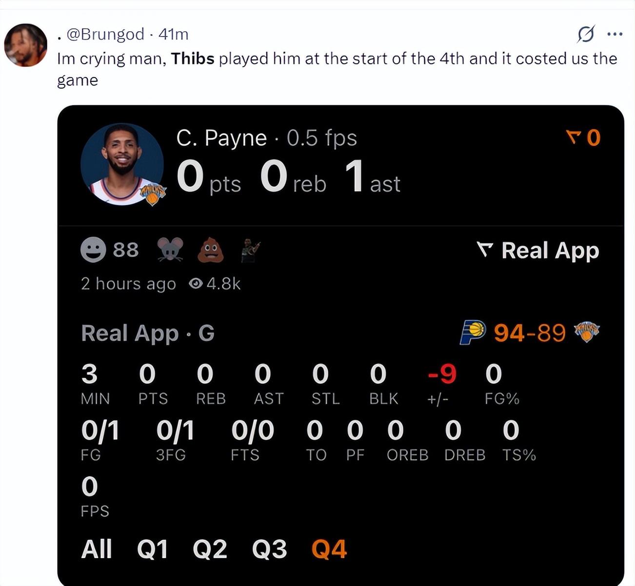 美球迷:我哭了,錫伯杜第四節一開始讓佩恩打3分鐘-9分,我們輸掉比賽。