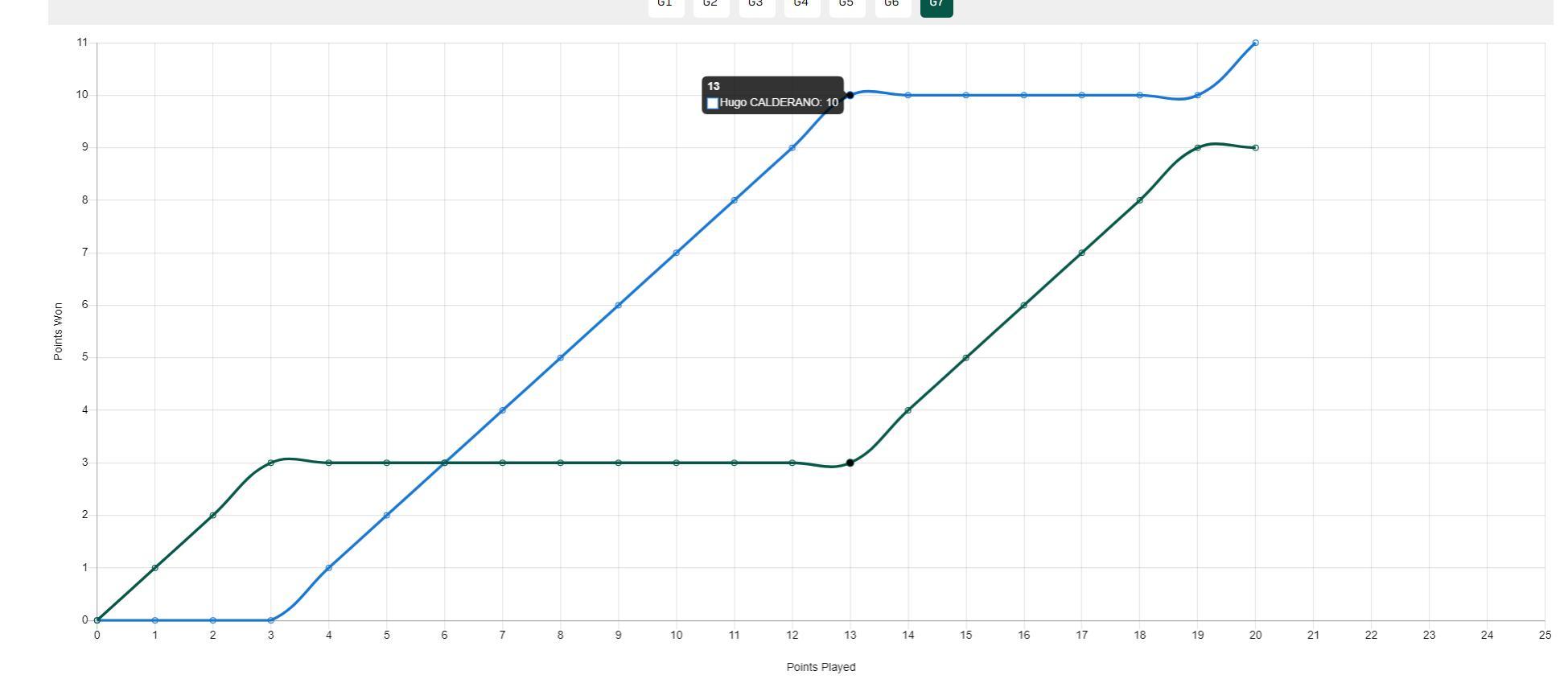搶七大戰雨果的狀態非常之多,兩人打到3-3後,雨果一波流連拿7分,沒錯是連拿7分,雨果直接10-3領先梁靖崑。
