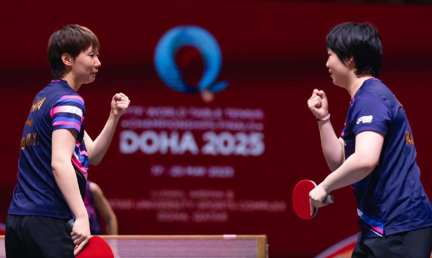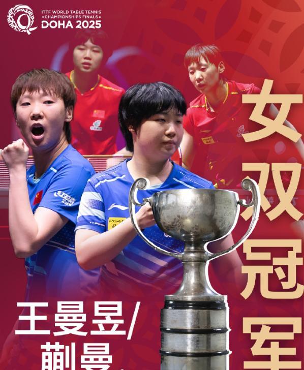 王曼昱在女雙項目上搭檔蒯曼也完成了統治,六場比賽一局都沒輸,可以說是無與倫比的強悍。