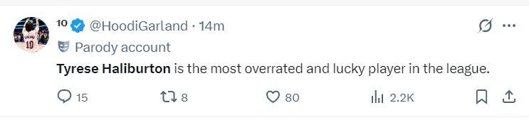 但是美媒還是批判他:哈利伯頓是聯盟最幸運且最被高估的運動員。(哈利伯頓季後賽已經多次命中反超/絕平球,輸一場就批判他?)