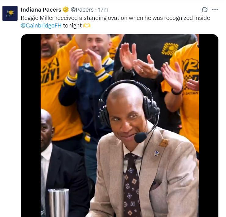 步行者名宿雷吉-米勒來到場邊解說這場比賽。