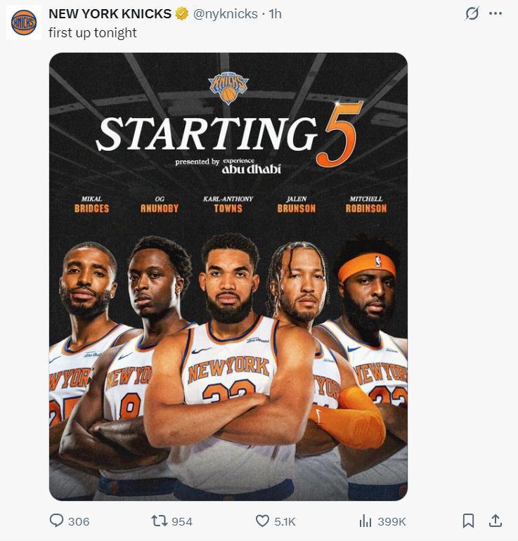 尼克斯:布倫森、哈特、阿奴諾比、唐斯、米羅