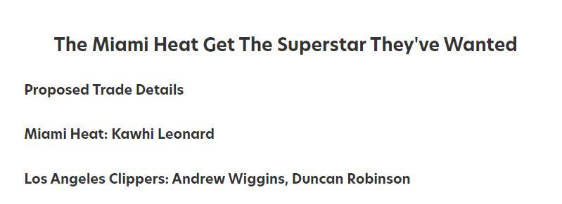 第二支是邁阿密熱火隊,很明顯威金斯來到熱火後並沒有展現攻防一體的體質,他無法成爲球隊的第一核心,倫納德則不同,他至少是聯盟超巨。熱火用威金斯+鄧羅換來小卡,組成希羅+倫納德+阿德巴約的新三巨頭。