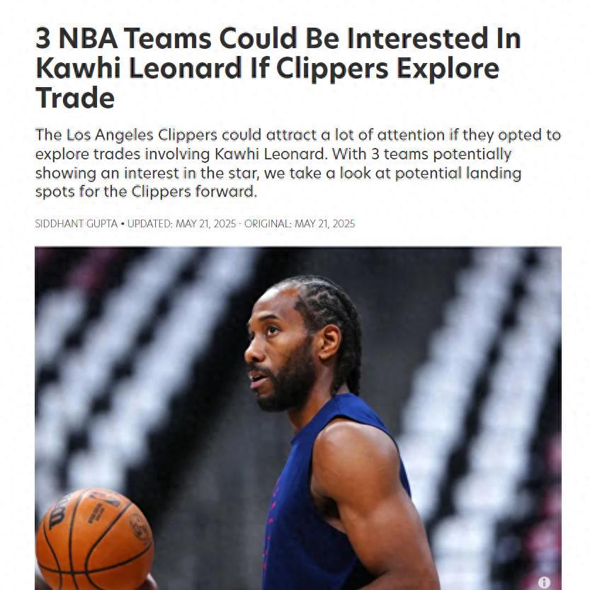 科懷-倫納德本賽季依舊是多場的負荷管理,常規賽37場+季後賽7場,合計44場比賽,常規賽場均31.8分鐘,拿到21.5分5.9籃板3.1助攻1.59搶斷0.46蓋帽,命中率49.8%,三分命中率41.1%,季後賽僅打了一場好球,美媒FW近日分析——如果快船探索小卡的交易,那麼有三隊會願意拿出誠意換他。