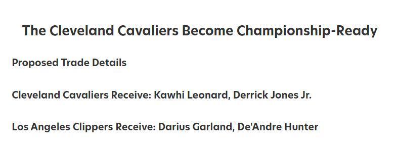 第三支則是本賽季東部第一的騎士,克利夫蘭人在次輪折戟沉沙,他們淪爲全世界的笑柄,他們太需要提升鋒線上的硬實力,如果他們願意拿加蘭+亨特換倫納德,那麼米切爾+倫納德+莫布利+阿倫的新四巨頭下賽季有希望捲土重來。