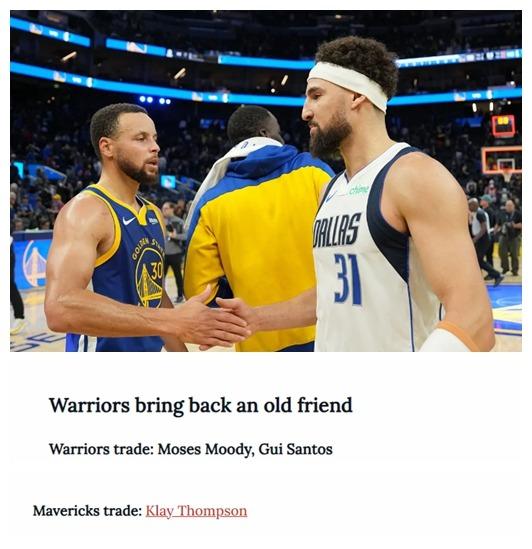 第三筆用穆迪+桑托斯將克萊從獨行俠換回來。克萊纔是最熟悉科爾體系與庫裏打球方式的二號位,克萊的空間能力可以最大限度發揮庫裏的能力,庫裏+克萊+巴特勒+追夢的組合纔是勇士球迷最希望看到的。