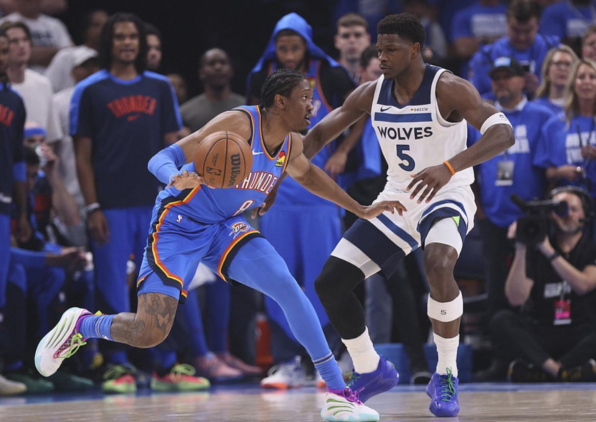 第三節雷霆的防守專注度有所下滑,傑威與霍姆格倫兩個進攻點效率也下滑,不過SGA已經拿到28分7助攻6籃板,雷霆還是領先森林狼26分之多。