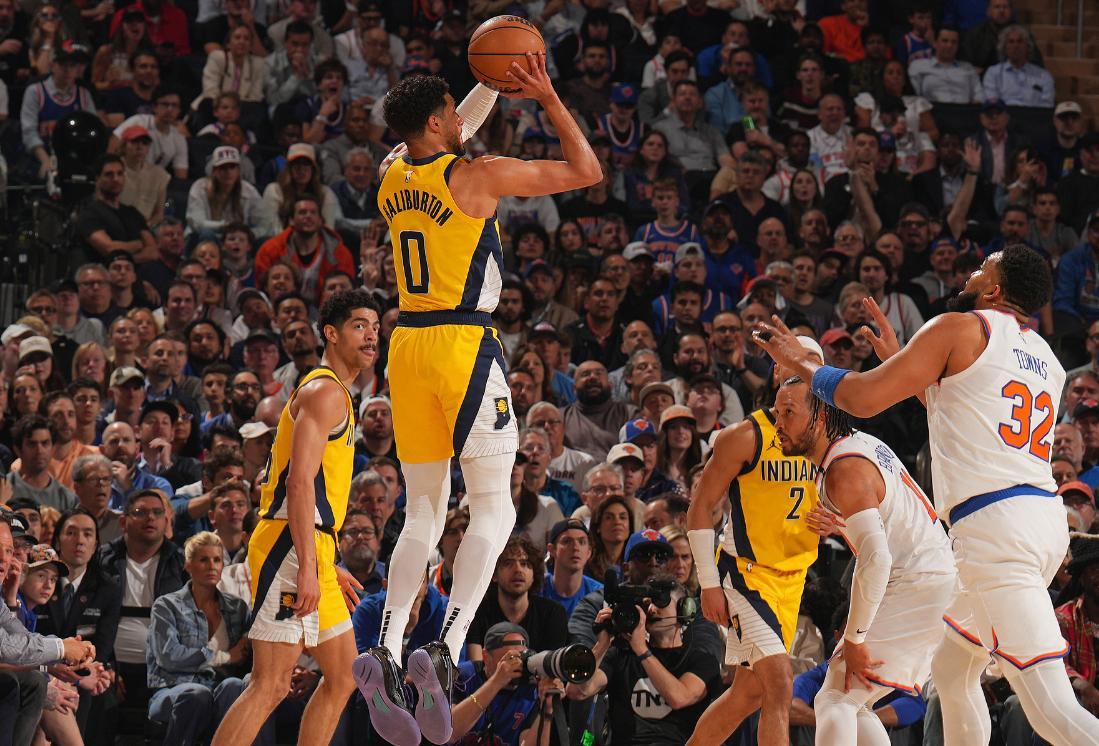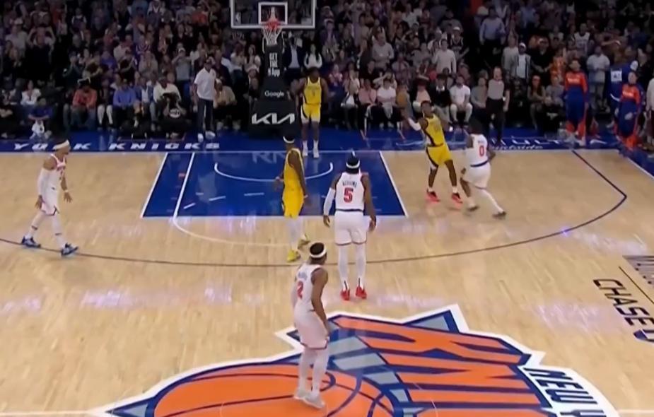 次節錫伯杜讓沙梅特、賴特進入輪換,麥康空切得手,唐斯強硬2+1後左膝又不適不斷地揉搓,他還拼下前場籃板二次進攻,西卡三分命中,哈特2+1,唐斯扛着西卡上籃偏出,唐斯帶隊打出12-2的高潮,唐斯籃下繼續命中太硬了,哈利伯頓造犯規,唐斯籃下再度命中,尼克斯最後一攻失誤,哈利超遠三分不中,尼克斯半場56-45領先步行者。