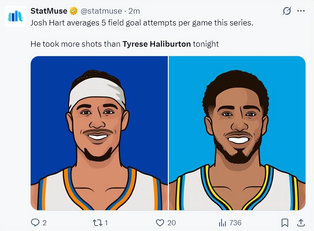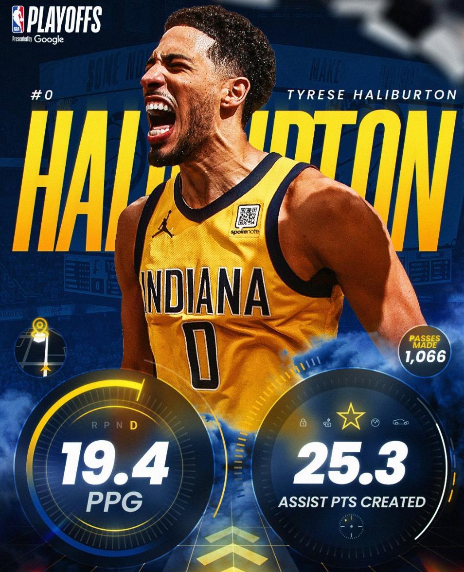 次節哈利伯頓被換上後打了足足4分鐘才以罰球拿到第二節的第一分,隨後哈利伯頓只出手了一個超遠的壓哨三不沾,單節哈利伯頓7分鐘1中0拿2分2助攻1搶斷1蓋帽,半場3中0拿4分1籃板3助攻1搶斷1蓋帽,這與G4的表現判若兩人。