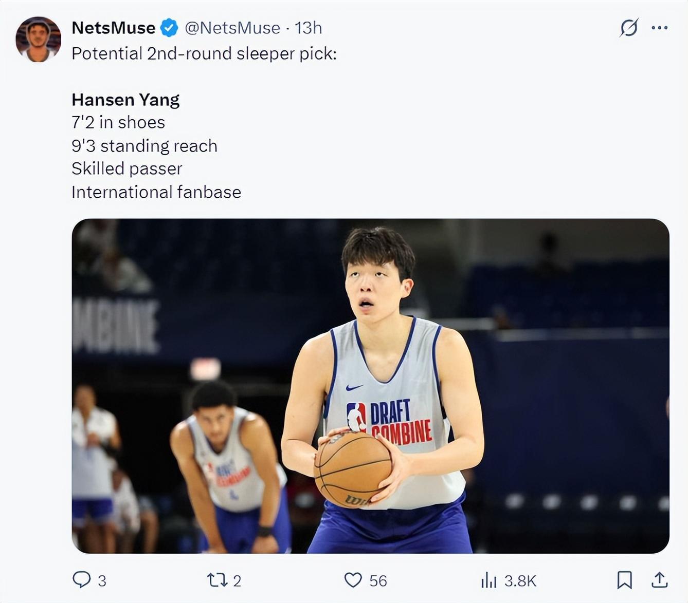 籃網媒體也表示,楊瀚森是潛在的次輪秀,他跟之前預測會落選已經完全不同。