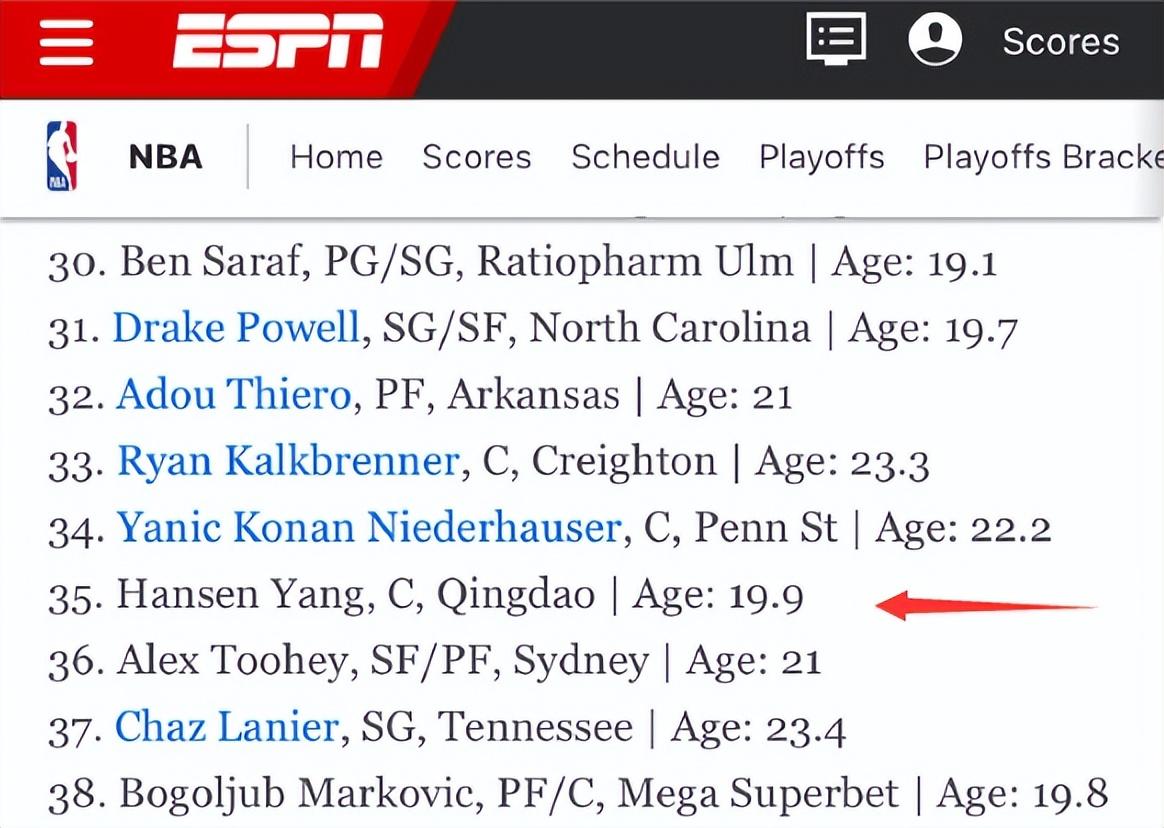 在ESPN最新的選秀模擬中楊瀚森排在次輪第35順位,雅虎體育最新的模擬楊瀚森排在次輪第39順位,這比之前的41-49又有了顯著的提升。楊瀚森收到超過10支球隊的試訓邀請,他會挑選球隊試訓到六月中旬,他的選秀行情還有希望提升。