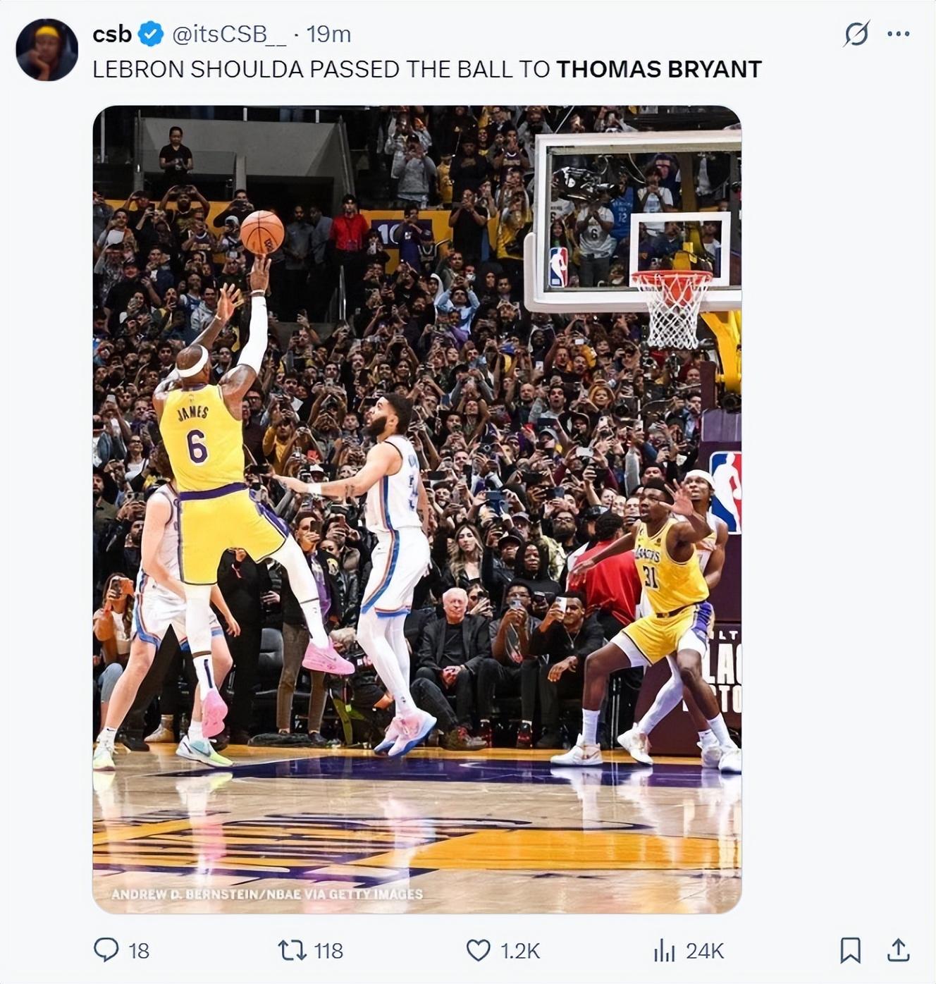 印媒:那一球詹姆斯真的應該傳給託布。