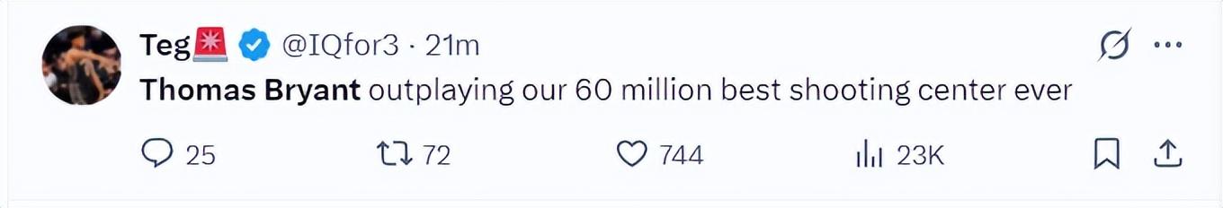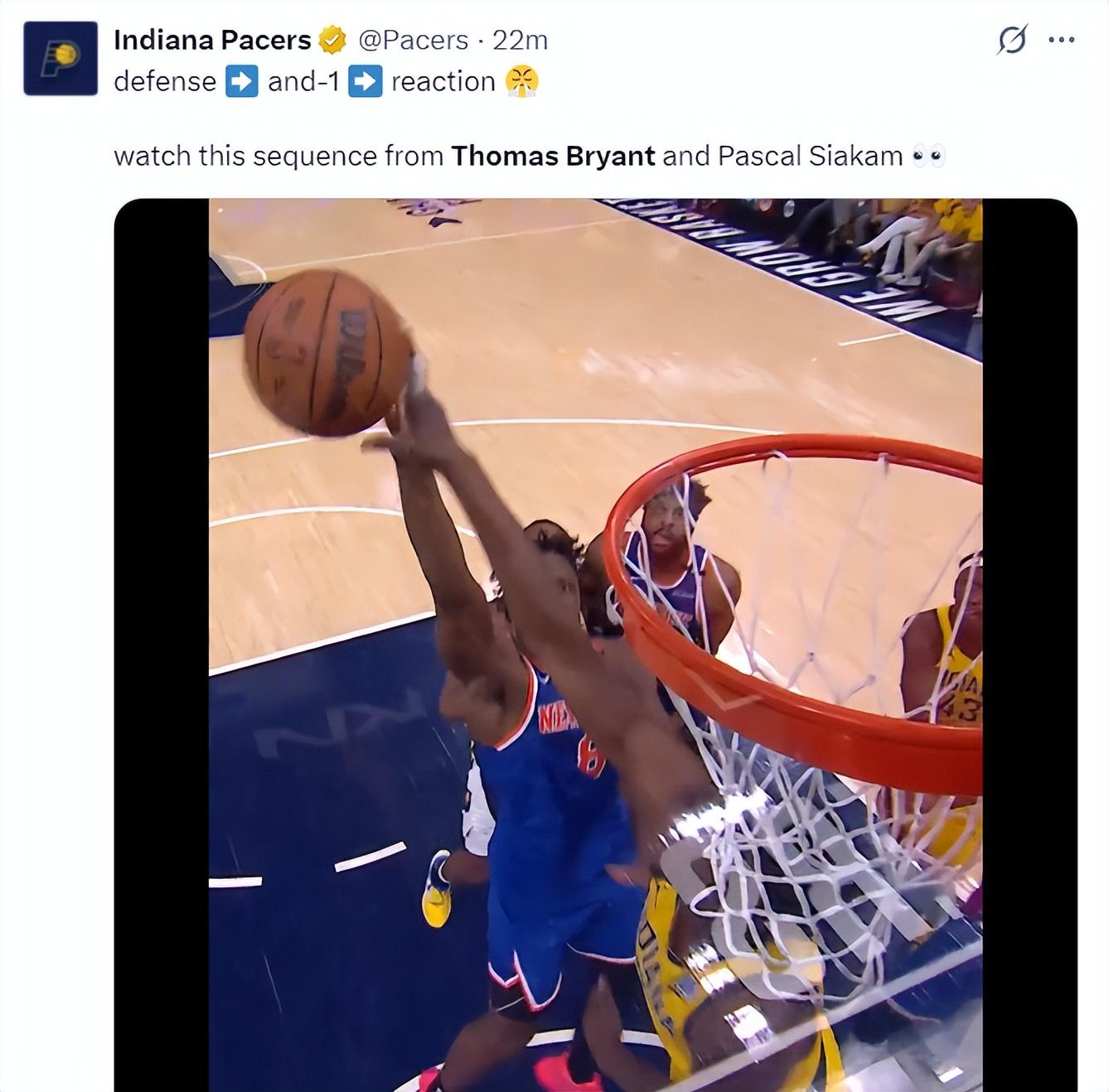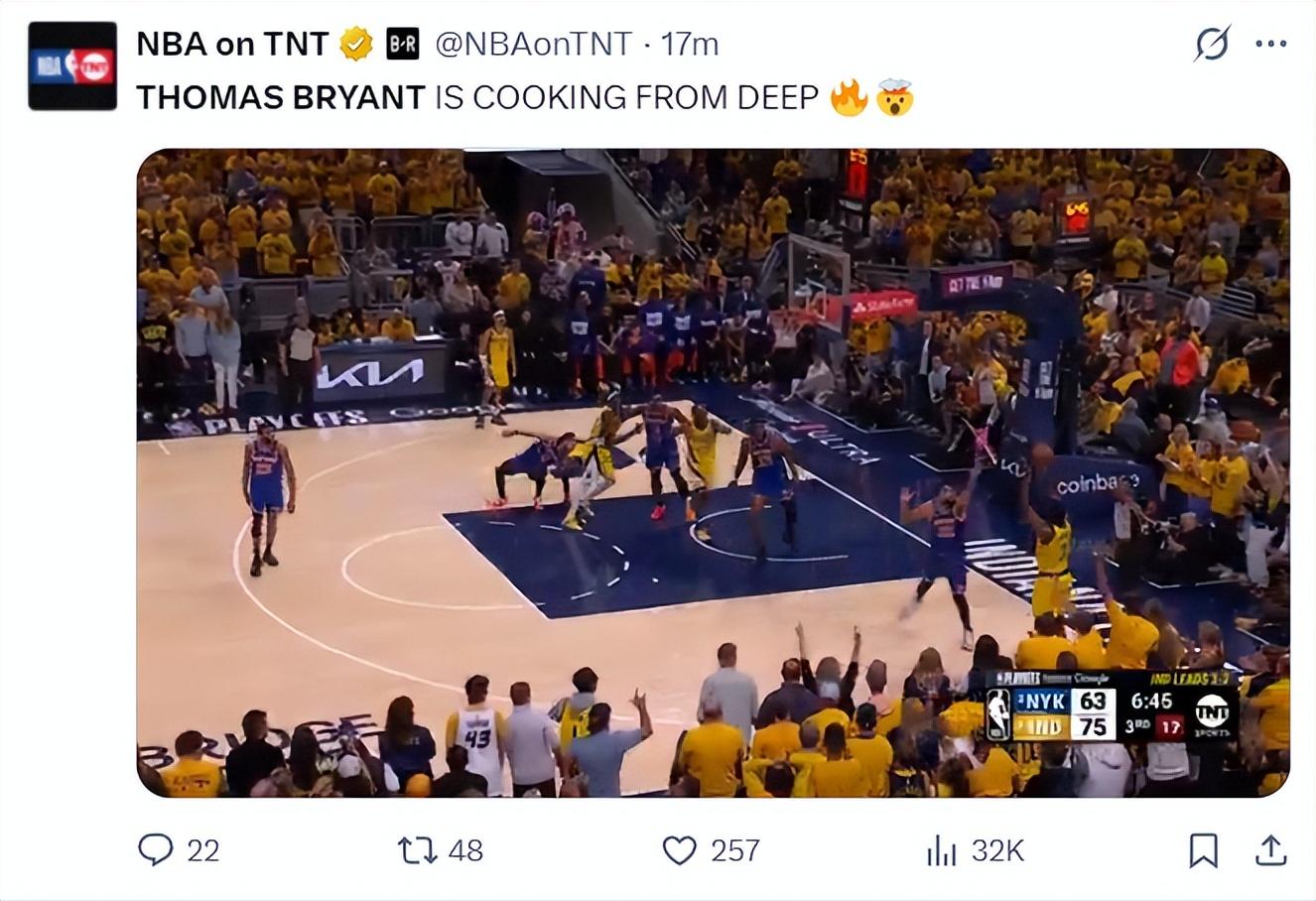 誰能想到托馬斯-布萊恩特會成爲步行者的奇兵,他這這輪系列賽實際上已經淪爲第三中鋒,但因爲G5一戰託尼布拉德利受傷,此役他重回第二中鋒,第三節他連續兩個三分球打停錫伯杜,全場爲他響起歡呼聲。